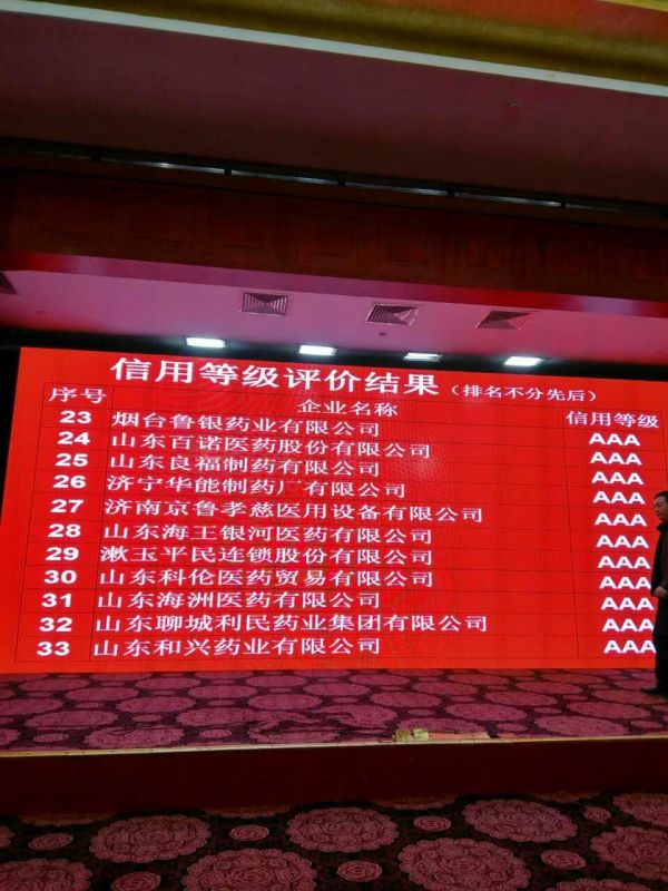 2016年11月4日,山東省醫(yī)藥行業(yè)協(xié)會召開信用等級評價結果大會,我公司獲得協(xié)會首批AAA信用企業(yè)稱號。總經(jīng)理李劍先生在大會上發(fā)言。